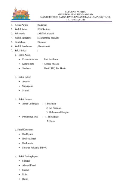 Contoh Cara Membuat Susunan Panitia Khitanan Dan Syukuran Halley Kawistoro