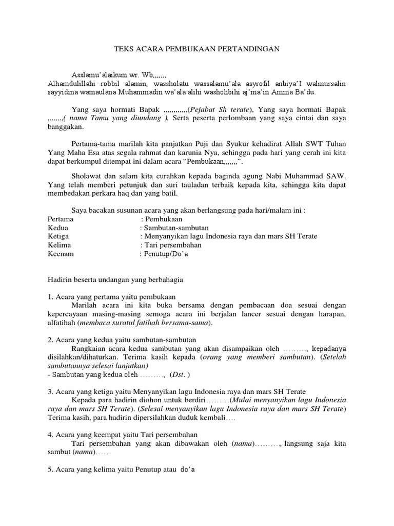 Yang mana pada pagi hari ini kita semua dapat berkumpul bersama dalam acara rapat rutin persit kartika chandra kirana dalam keadaan sehal walafiat. Kami agungkan segala asma kebesaran mu karena engkau zat yang mulia kami tadahkan tangan kehadirat mu karena engkaulah zat yang maha mengabulkan segala permohonan hamba mu untuk itu dengan mengucapkan puji serta syukur kehadirat mu atas segala rahmat karunia mu yang telah engkau limpahkan kepada kami pada saat ini kami hadir bersama dalam acara hari gerakan koperasi ke 61 tahun 2008. Contoh teks mc atau teks pembawa acara mc atau master ceremony merupakan seseorang yang memimpin jalannya sebuah acara baik itu acara formal maupun acara non formal.