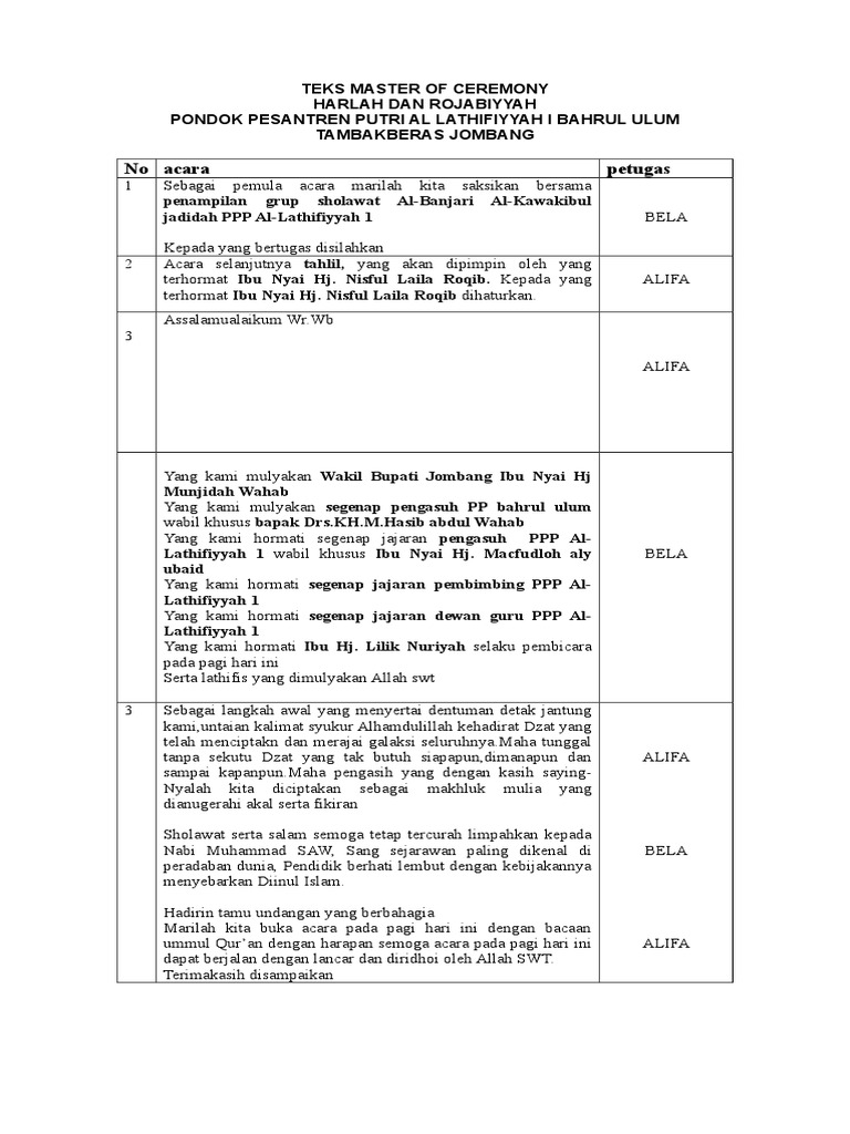 Teks Mc N Susunan Acara Harlah Dan Rojabiyyah