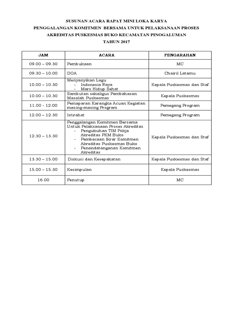 Susunan Acara Rapat Penggalangan Komit Pdf