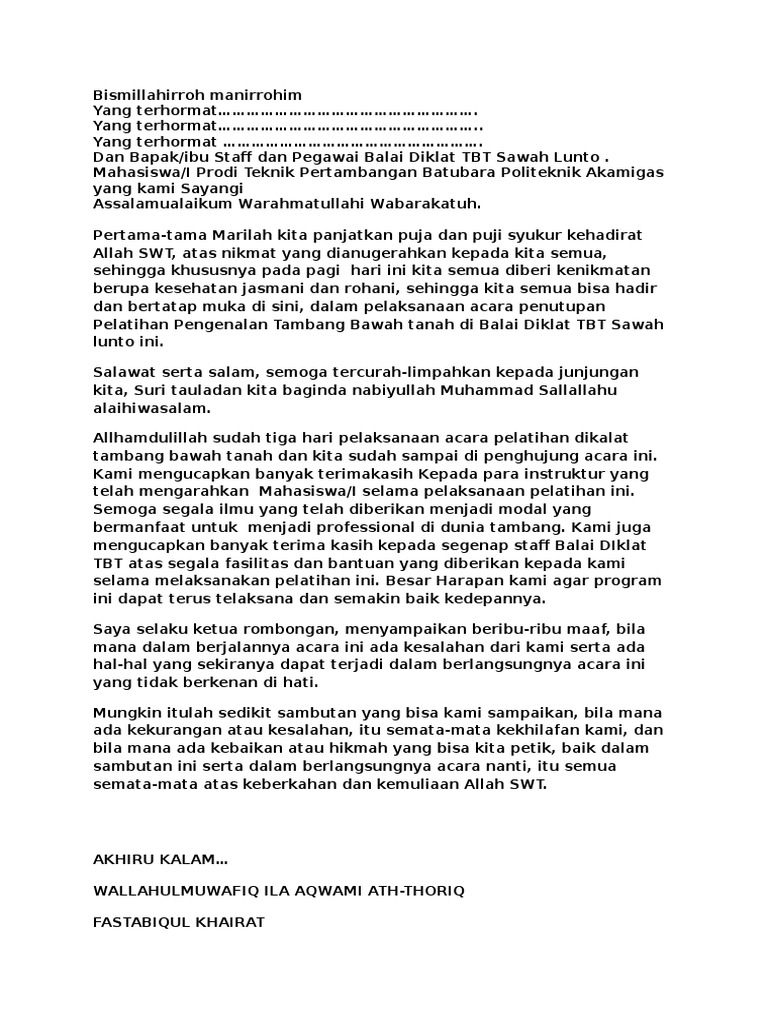 Contoh Kata Sambutan Pembukaan Acara. Tak bisa dipungkiri sudah banyak orang. Kata Kata Penutup Acara.