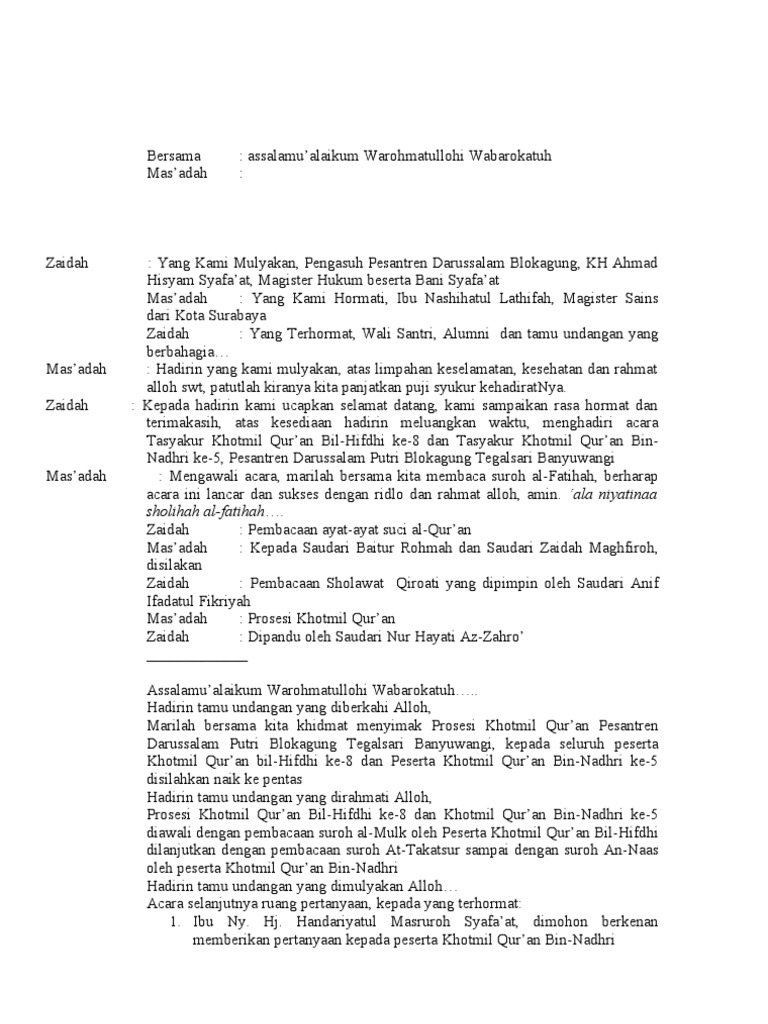 Contoh Naskah Pembawa Acara Mc Khotmil Qur An Bigrospace