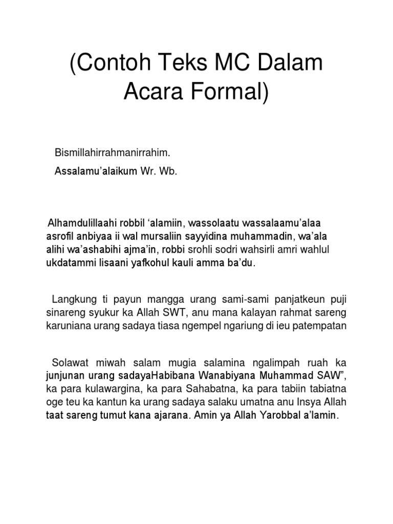 Mengawali acara walimah kali ini marilah kita buka dengan pembacaan surat Al-Fatihah dengan harapan acara ini nanti dapat berjalan dengan lancar dan apa yang menjadi hajat shahibul hajah dan hajat kita semua dapat terkabul alaa hadzihin niyyah wa alaa kulli niyyatin shalihah al-fatihah. Contoh Teks MC Pelantikan Badan Eksekutif Mahasiswa Badan Eksekutif Mahasiswa merupakan organisasi yang bergerak di tingkat Universitas maupun di tingkat fakultas. Teks mc dangdut teks mc tot pada kesempatan ini saya hendak membagikan contoh naskah teks untuk seorang mc pernikahan khususnya kepada anda anda yang akan menjadi pembawa acara di sebuah pesta kumpulan teks mc acara resmi selamat datang diblog vestitijaya.