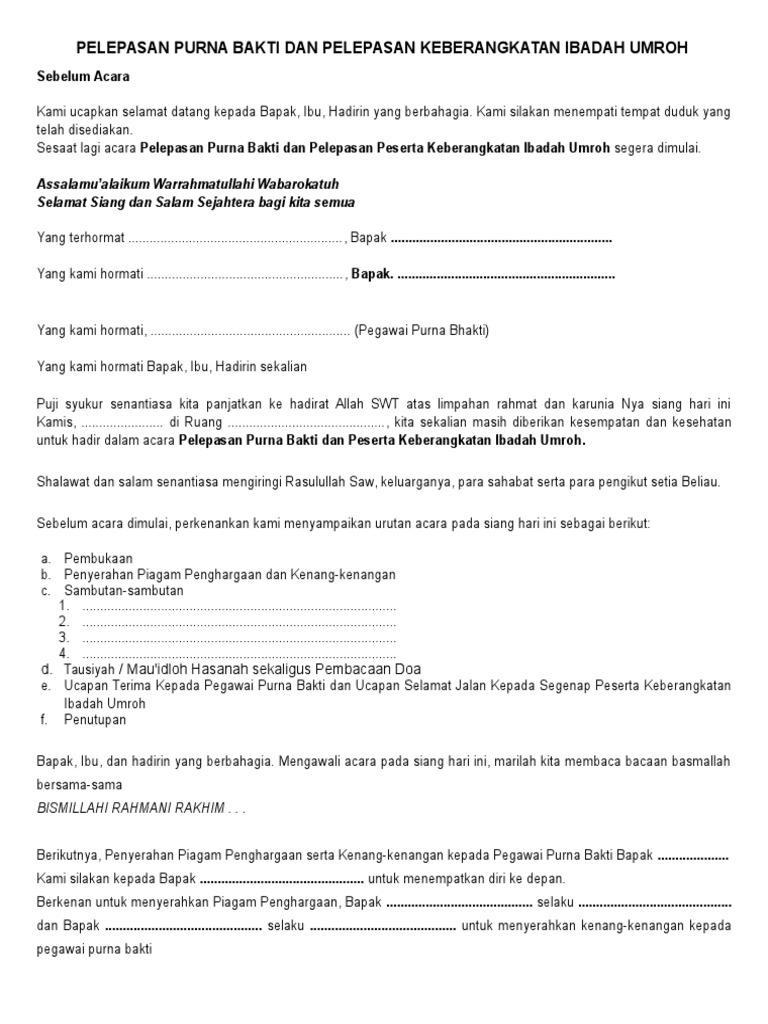 Naskah Pemandu Acara Pelepasan Umroh Dan Pegawai Purna Bhakti