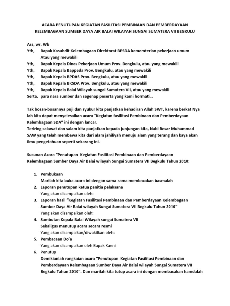 Doc Susunan Acara Penutupan Muhammad Sutekad Academia Edu