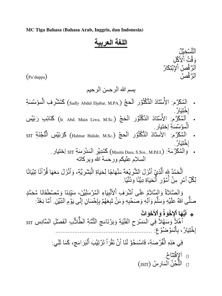 Contoh Teks Mc Arab Dan Terjemahannya Pdf Document