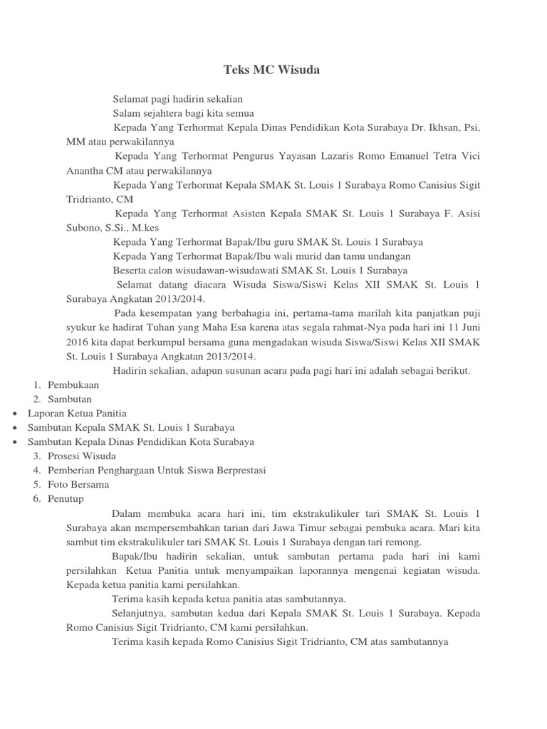 Doc Contoh Teks Mc Wisuda Unisma 2016 Putri Saniatul Iklima Academia Edu