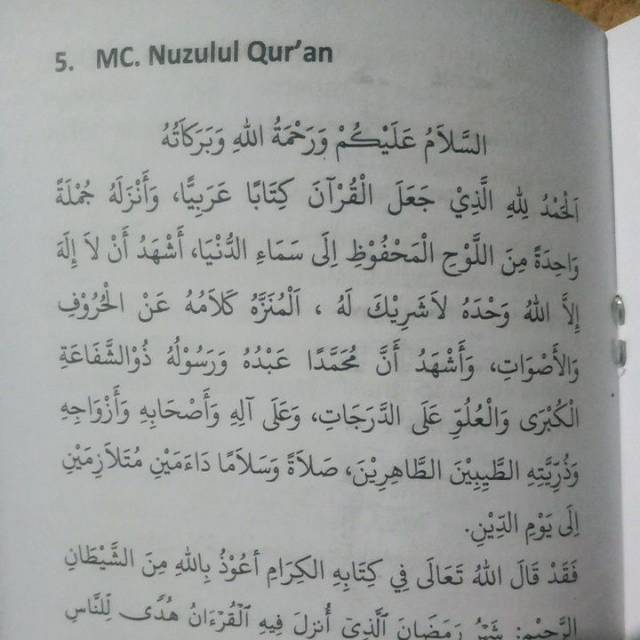 Nuzulul Quran sendiri adalah Allah Swt menurunkan Al Quran melalui. Contoh Teks MC Peringatan Nuzulul Quran. Alhamdulillahilladzi allamal quran holakol insanu allamahul bayan al qoil inna anzalnahufi lailatimmubarokatin innakunna mundirin.