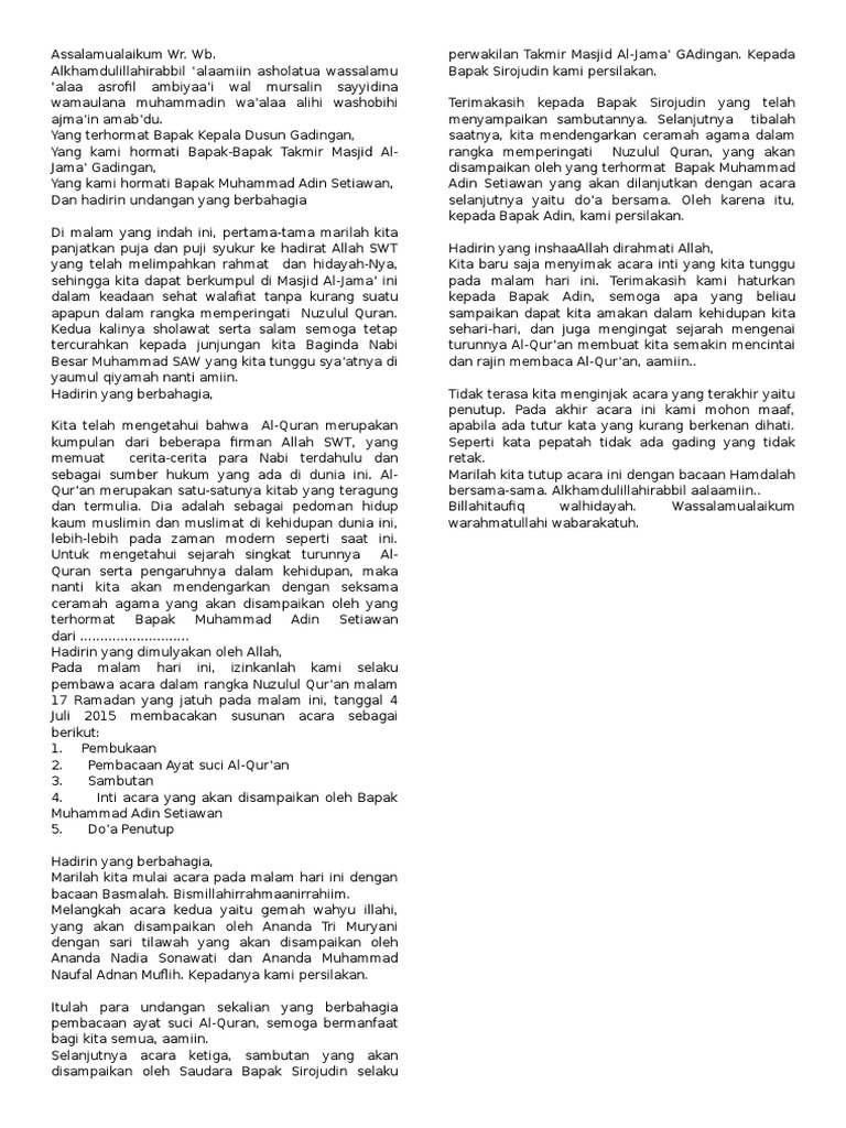 Contoh Teks Mc Pembawa Acara Nuzulul Qur An Blog Iseng Kumpulan Informasi Menarik