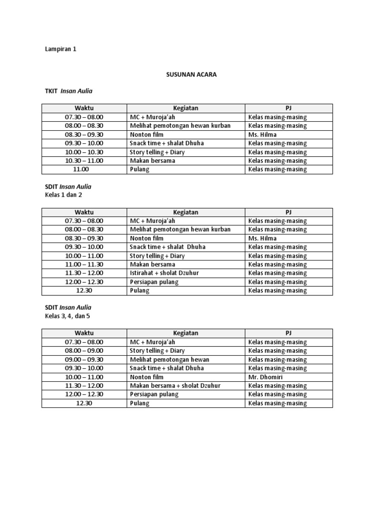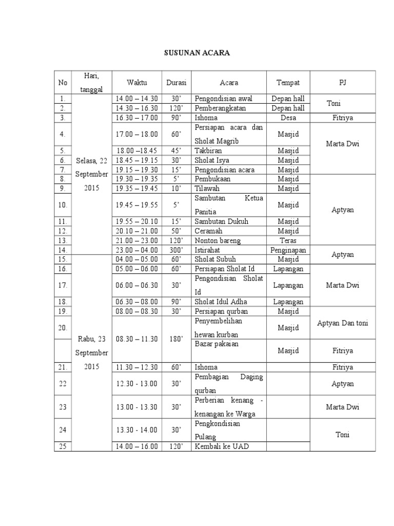 Doc Run Down Acara Idul Adha Eko Talo Academia Edu