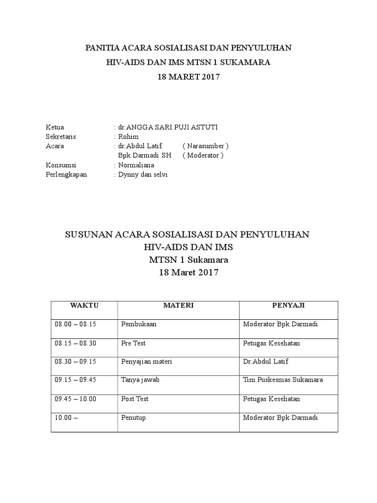 Doc Susunan Acara Penyuluhan Kesehatan Sirajuddin Anhary Academia Edu