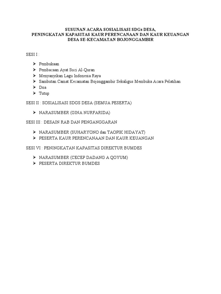 Susunan Acara Sosialisasi Sdgs Desa