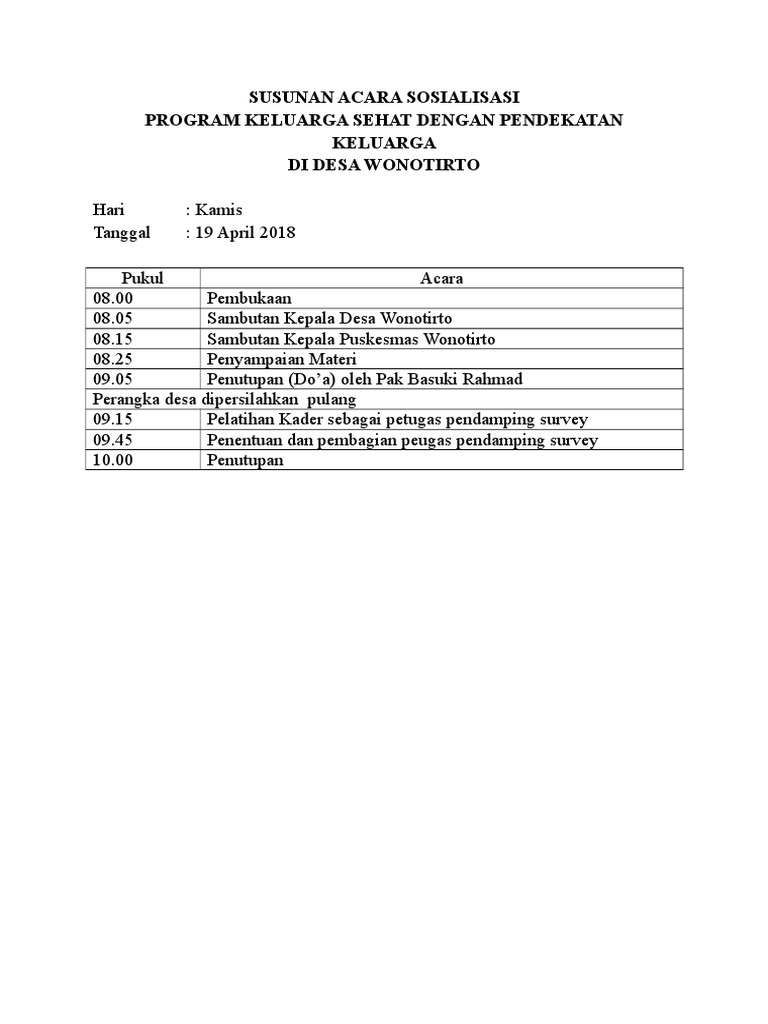 Contoh Susunan Acara Sosialisasi Di Desa