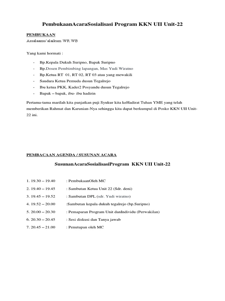 Susunan Acara Sosialisasi Program Kkn Uii Unit