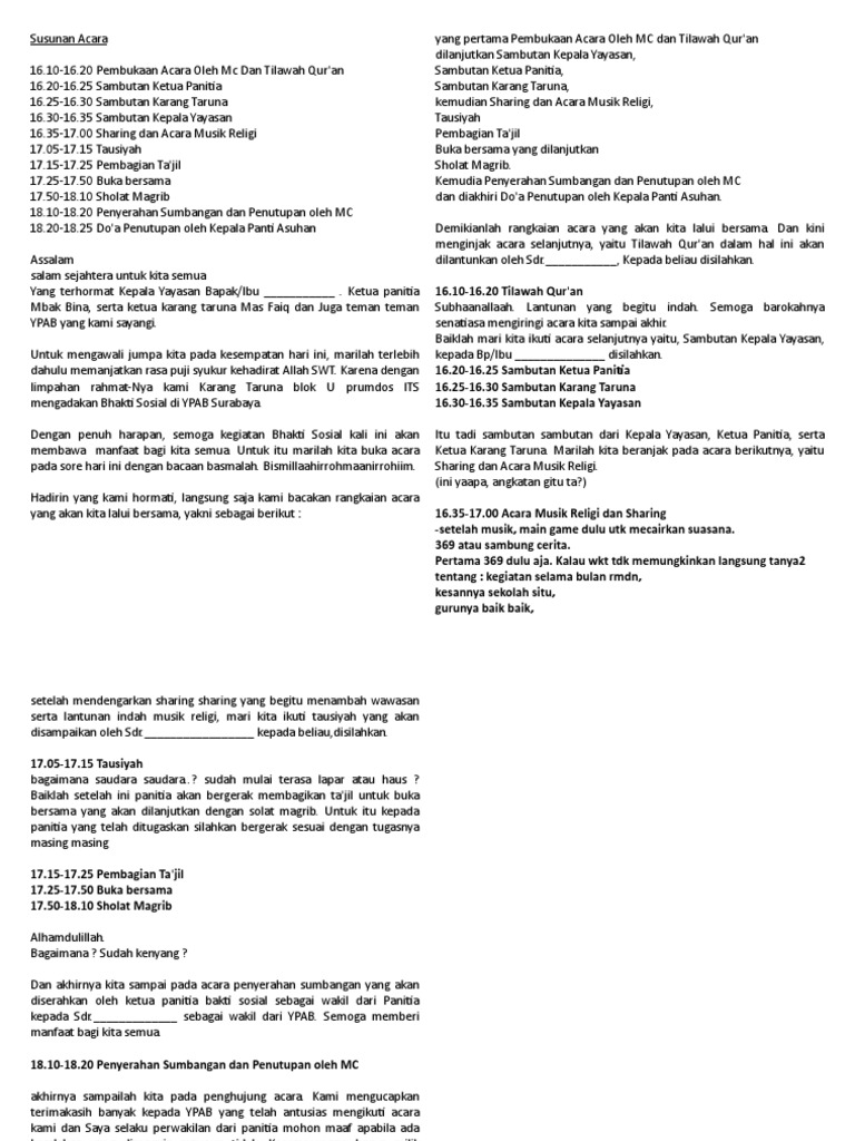 Susunan Acara Bakti Sosial Di Panti Asuhan Al Docx