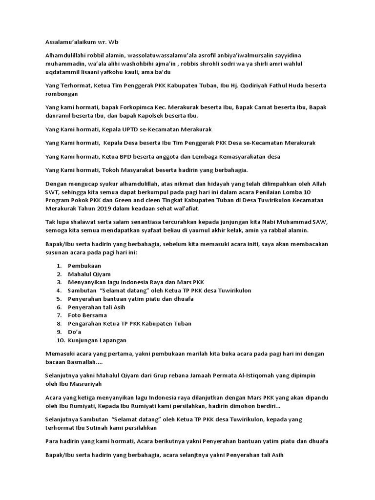 Kumpulan Contoh Susunan Acara Pkk Rt Kumpulan Contoh Teks Mc