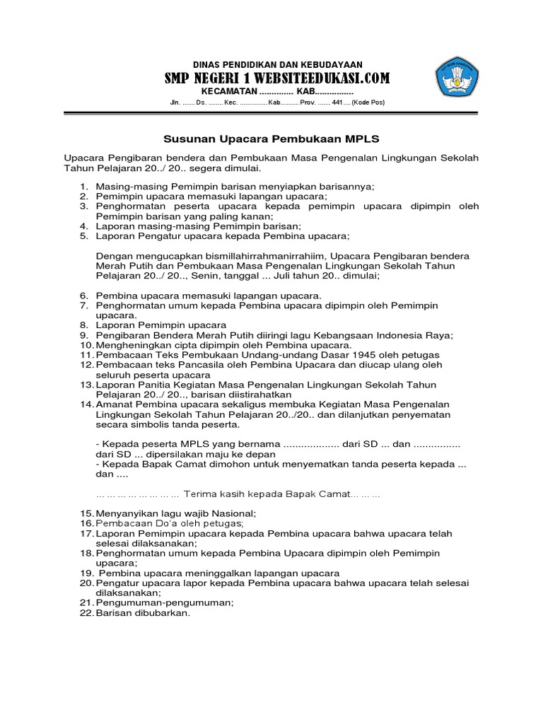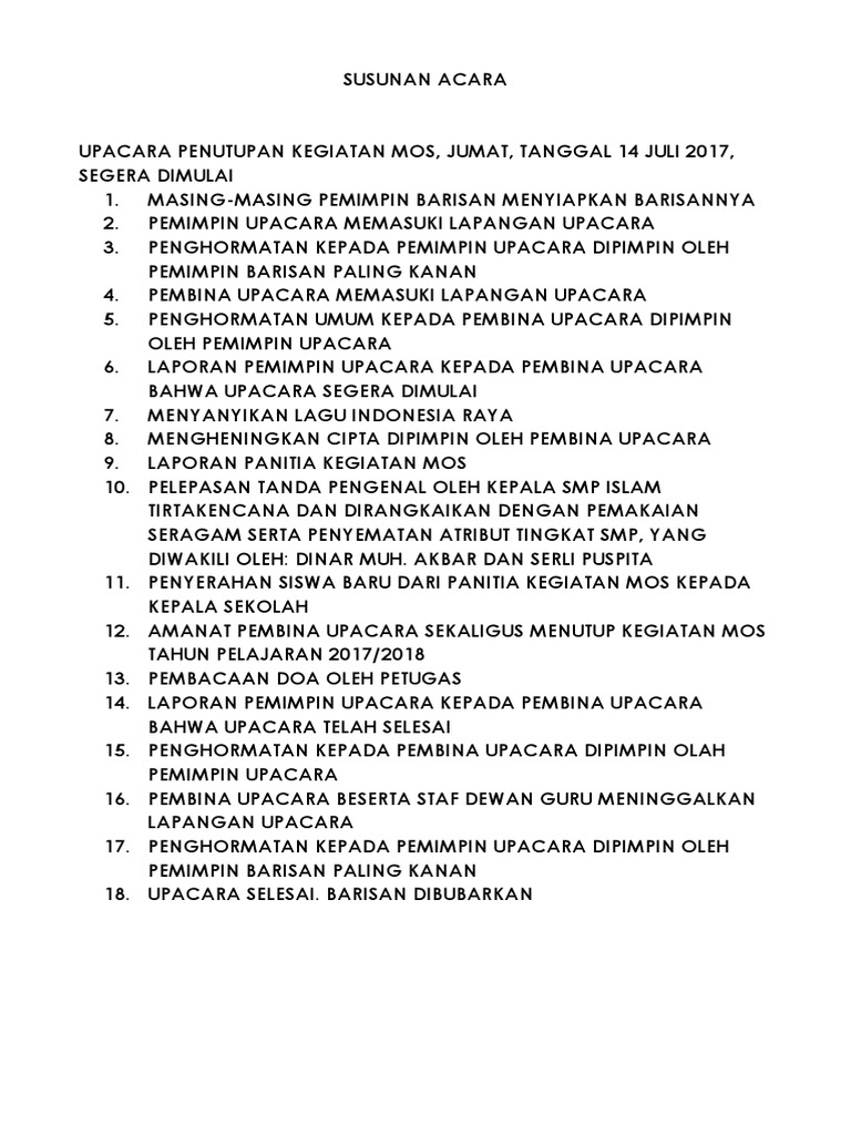 Susunan Upacara Pembukaan Mos. Translate jul 13 2021 mc pembukaan acara formal pembawa acara resmi di acara. Merupakan sebuah organisasi resmi ini berarti proses perekrutan dan pelantikan setiap pengurusnya juga merupakan suatu hal yang penting dan tentunya diketahui secara resmi oleh pejabat-pejabat.