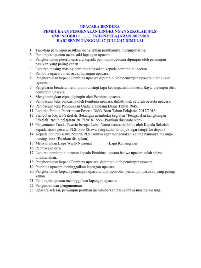 Lengkap Susunan Upacara Pembukaan Mpls Terbaru Sd Smp Sma Smk Kherysuryawan Id