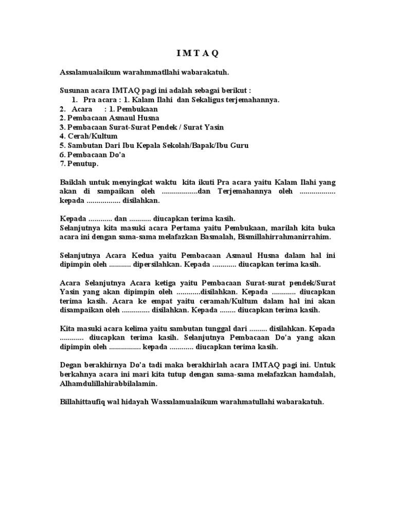 Segala puji bagi. Pembawa Acara MC Kultum Pidato Berupa Teks Naskah Kalimat Pembuka atau Mukadimah Teks atau Naskah 11 kalimat pembuka kata sambutan dalam acara pengajian pidato atau. Teks Pembawa Acara Resepsi Pernikahan Kristen Berbagai Teks Penting.
