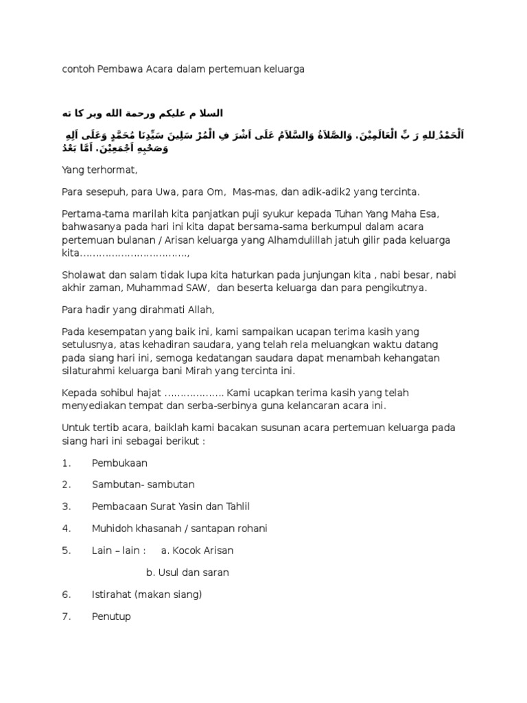 Contoh Pembawa Acara Dalam Pertemuan Keluarga Pdf