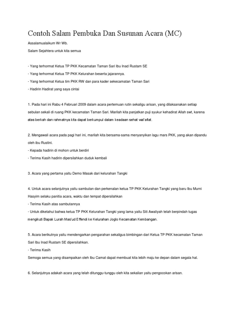 Contoh Salam Pembuka Dan Susunan Acara Pdf