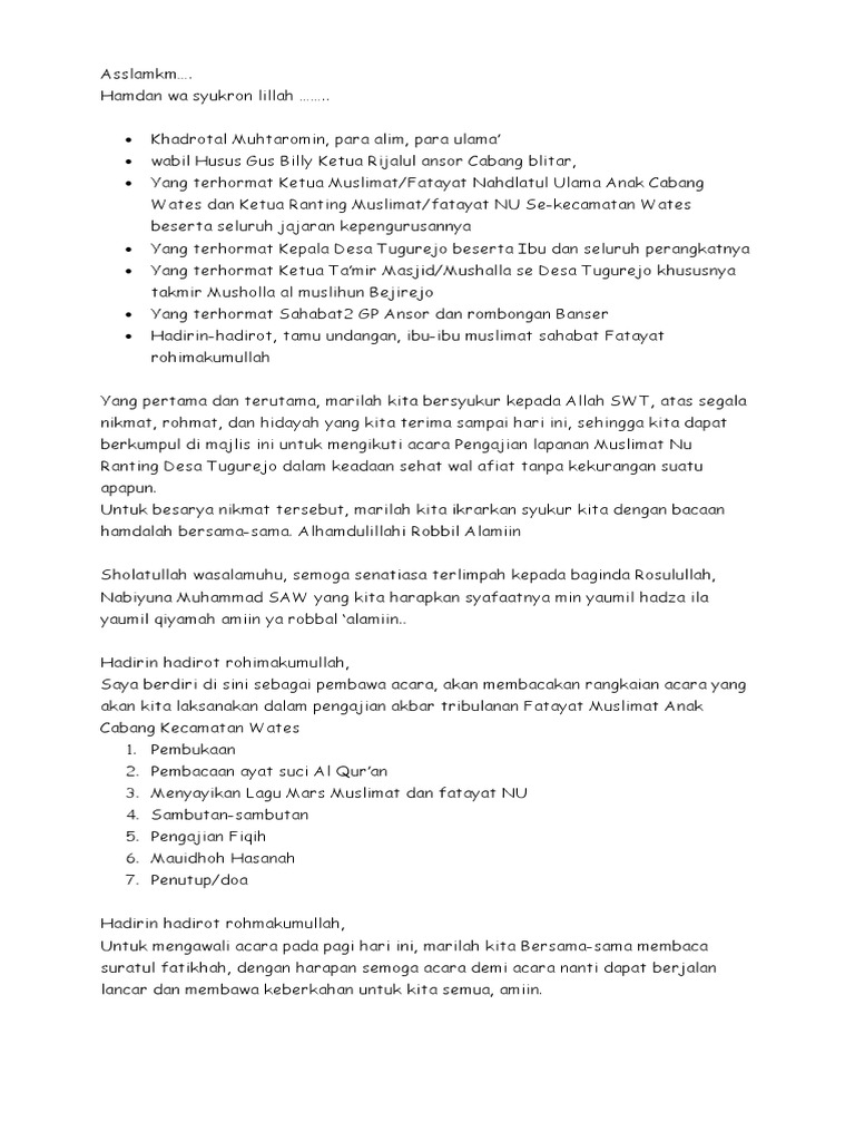 Contoh Contoh Teks Pembawa Acara Pengajian Fatayat Tukaffe Com