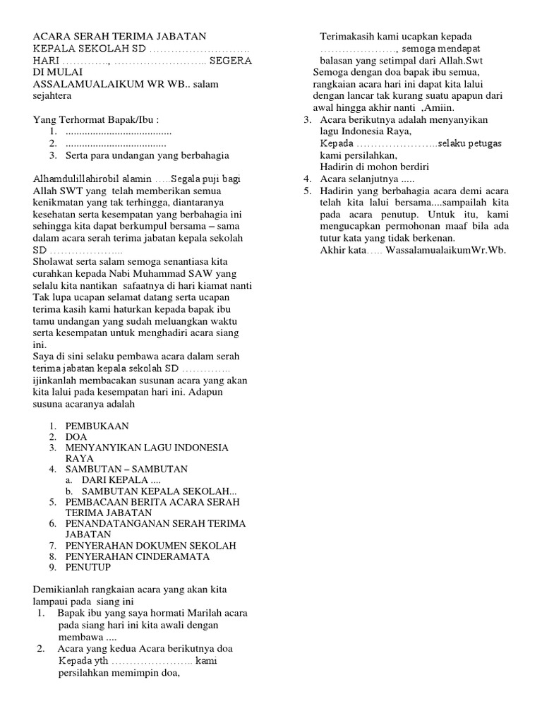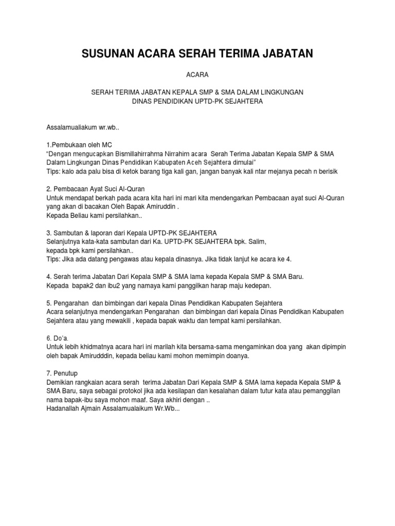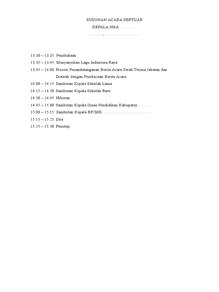 Susunan Acara Sertijab Kepala Sekolah Pdf
