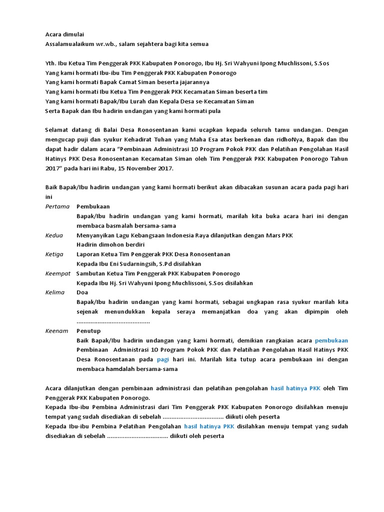Contoh Teks Pembawa Acara Rapat Pkk Tukaffe Com