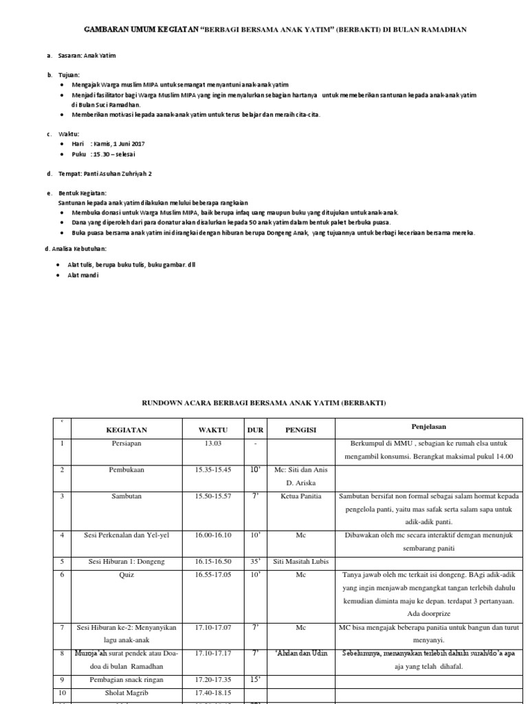 Susunan Acara Santunan Anak Yatim Mc Pdf