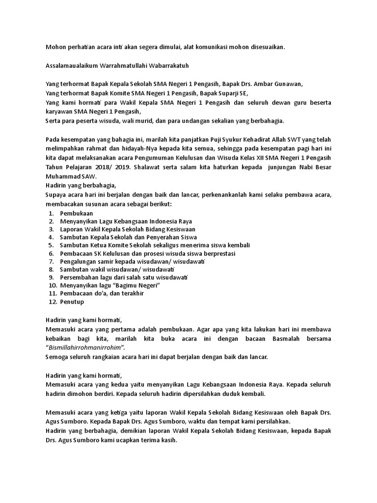 Contoh Teks Pidato Singkat Tentang Pendidikan Moral. Contoh susunan acara pengajian rutin. Susunan Acara Prosesi Wisuda Tahfidz Pdf.