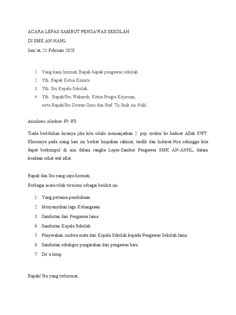 Teks Pembawa Acara Lepas Sambut Pengawas Pdf