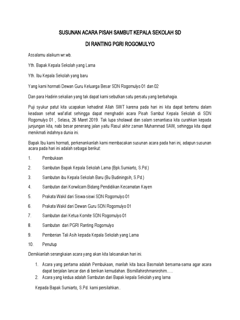 Susunan Acara Pisah Sambut Kepala Sekolah Sd Pdf
