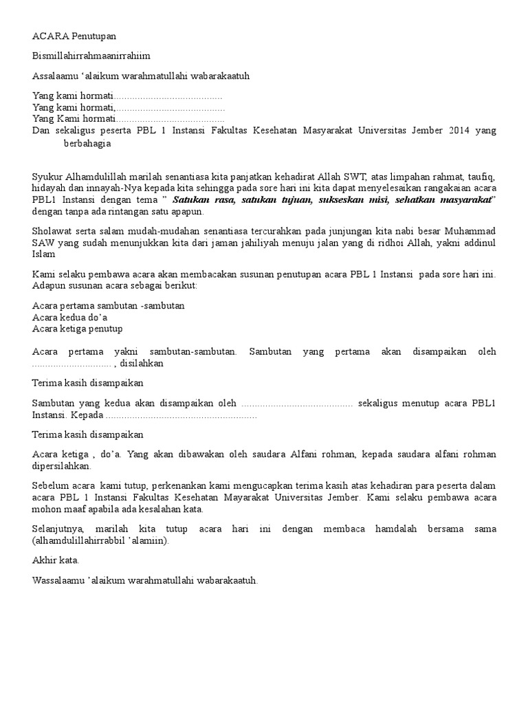 Kumpulan Teks Mc Penutupan Acara Terbaru Kumpulan Teks Mc Penutupan Acara Terbaru