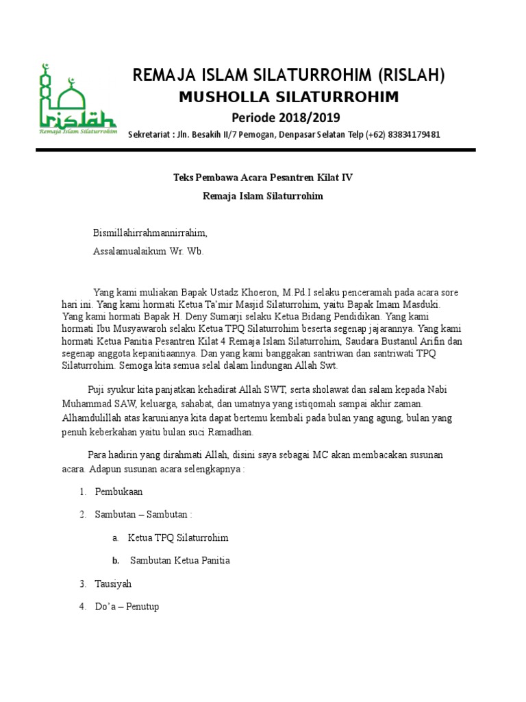 Contoh Pembukaan Mc Islami Kumpulan Contoh Teks Muqadimah Pidato
