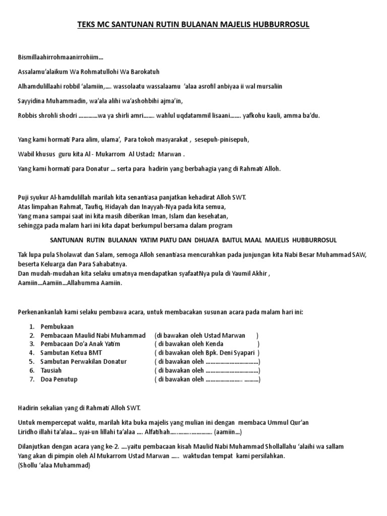Teks Mc Santunan Rutin Bulanan Majelis Hubburrosul Pdf